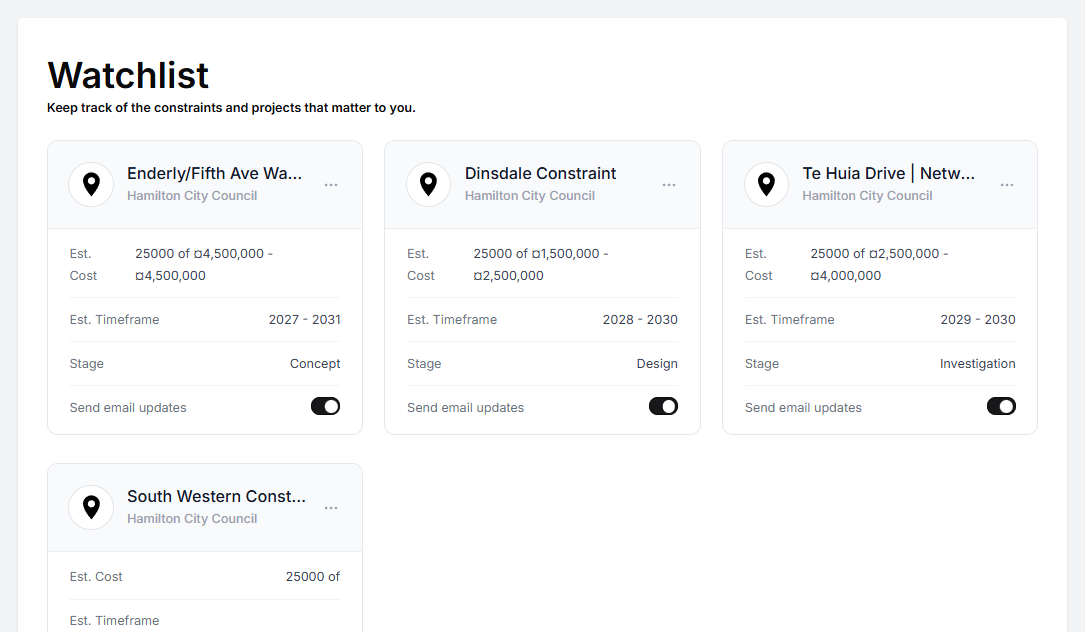 Access is role-based. Councils, CCOs, asset owners, and the development community can all participate within defined permissions. Each organisation controls what information it shares, while developers gain visibility into projects and capacity to inform better project planning.